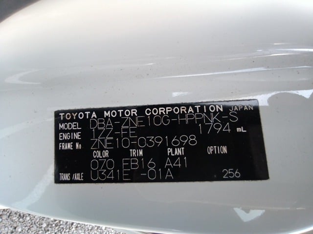 | CHASSIS NO. | ZNE10-0391698 |