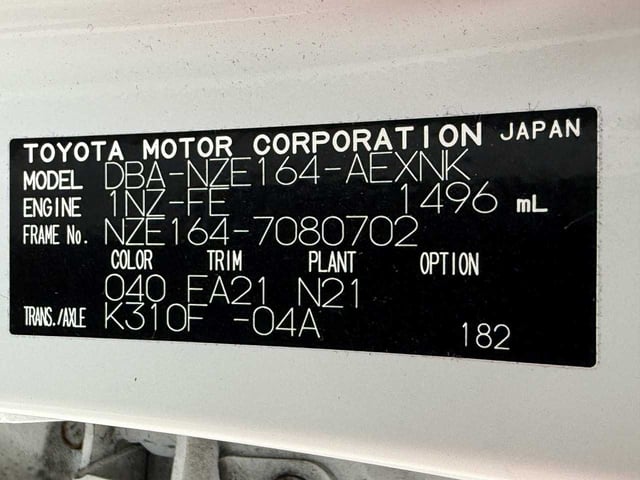 | CHASSIS NO. | NZE164-7080702 |