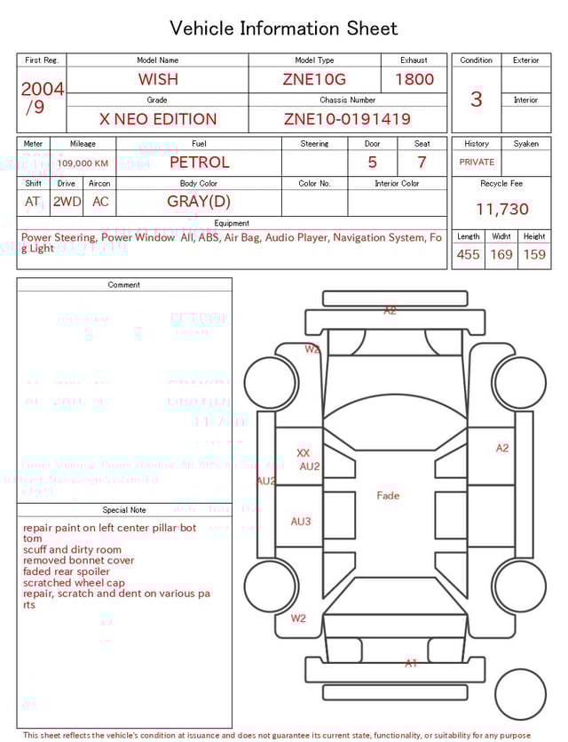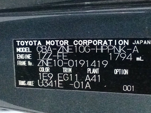 | CHASSIS NO. | ZNE10-0191419 |