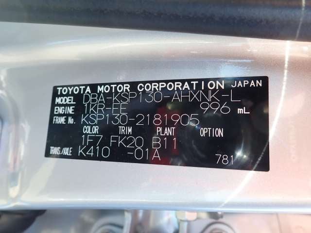 | CHASSIS NO. | KSP130-2181905 |