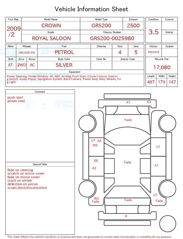 | CHASSIS NO. | GRS200-0025980 |