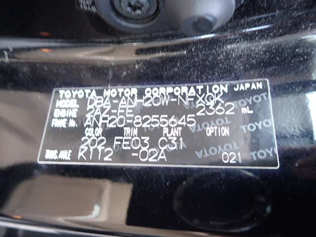 | CHASSIS NO. | ANH20-8255645 |