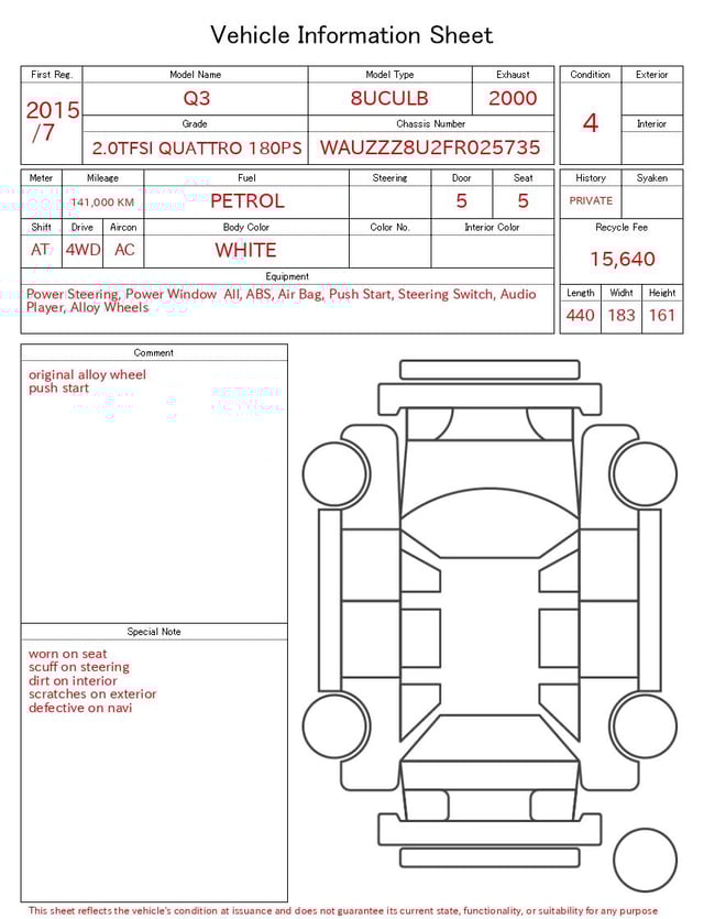 | CHASSIS NO. | WAUZZZ8U2FR025735 |