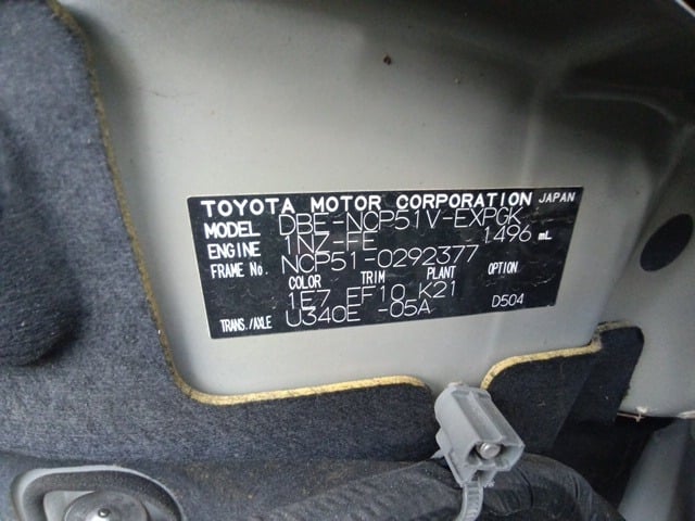 | CHASSIS NO. | NCP51-0292377 |