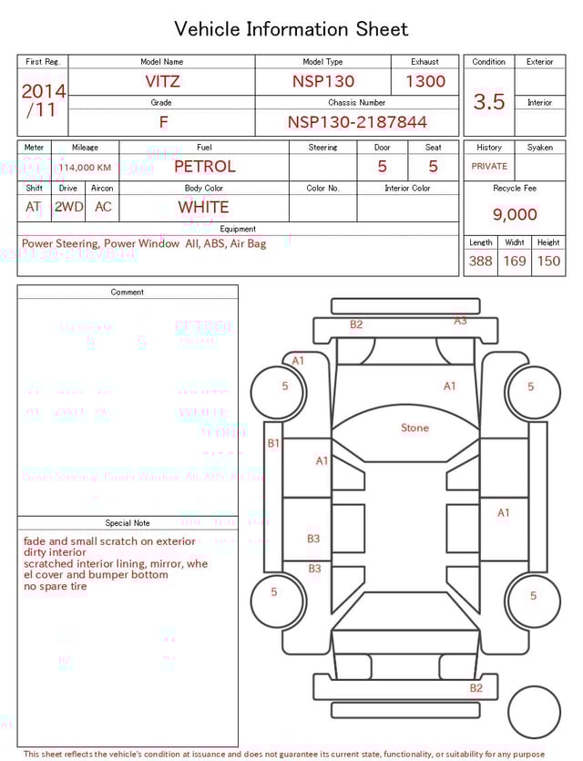 | CHASSIS NO. | NSP130-2187844 |