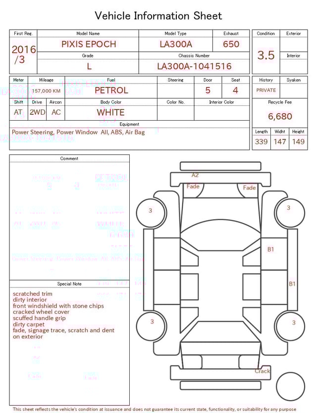 | CHASSIS NO. | LA300A-1041516 |