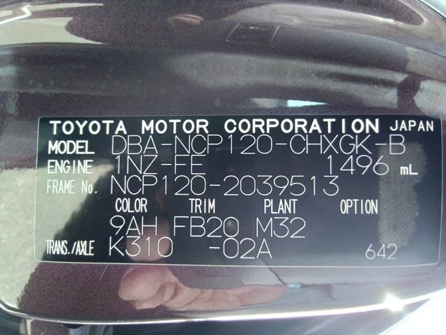 | CHASSIS NO. | NCP120-2039513 |