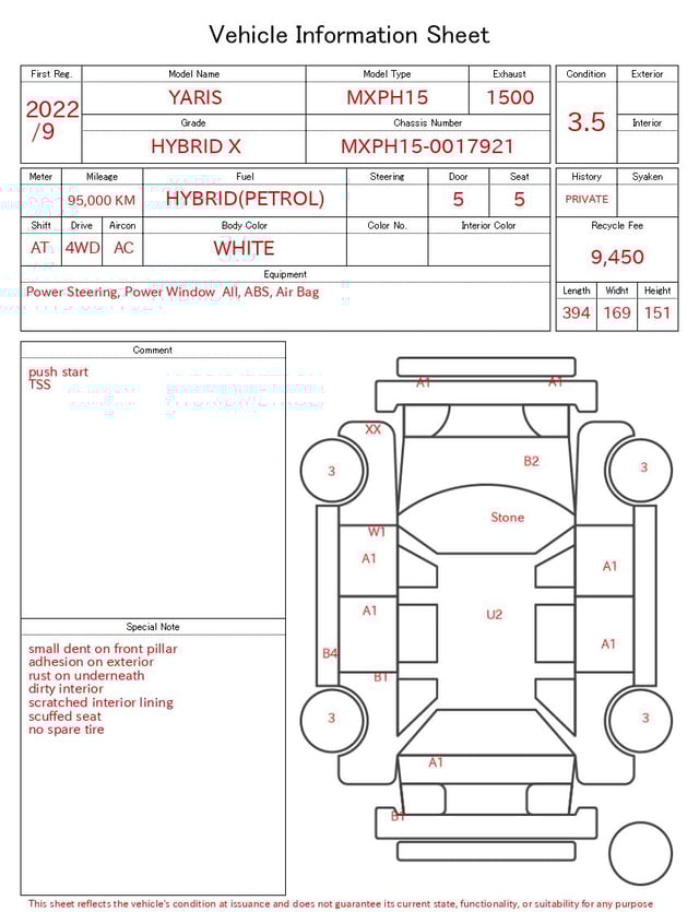 | CHASSIS NO. | MXPH15-0017921 |