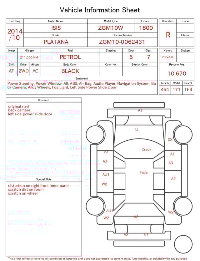 | CHASSIS NO. | ZGM10-0062431 |
