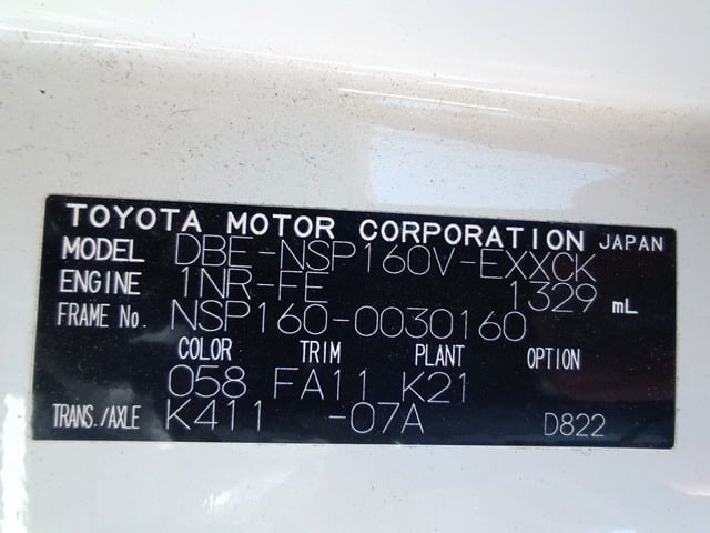 | CHASSIS NO. | NSP160-0030160 |
