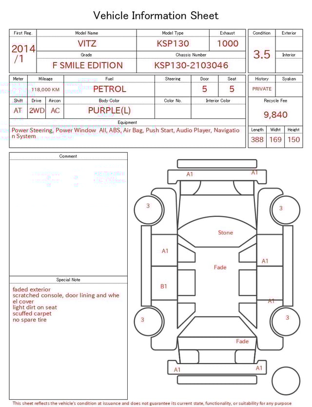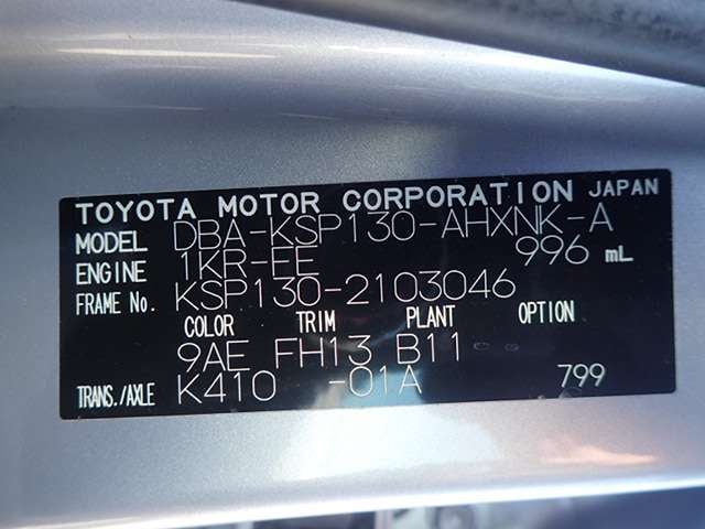 | CHASSIS NO. | KSP130-2103046 |