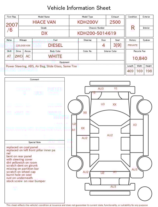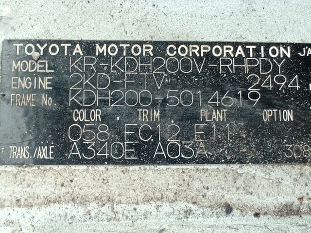 | CHASSIS NO. | KDH200-5014619 |