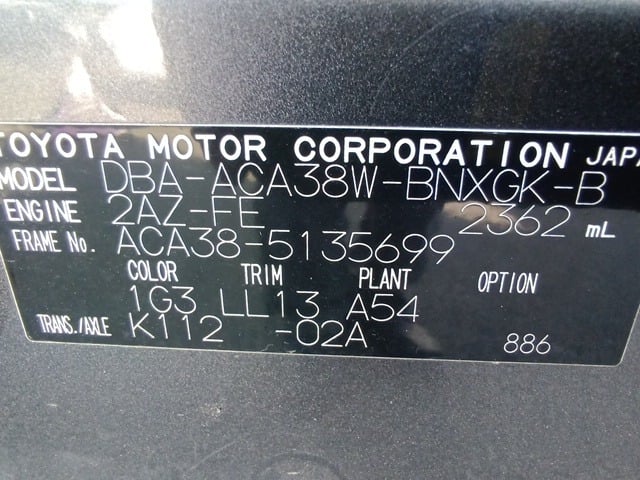 | CHASSIS NO. | ACA38-5135699 |