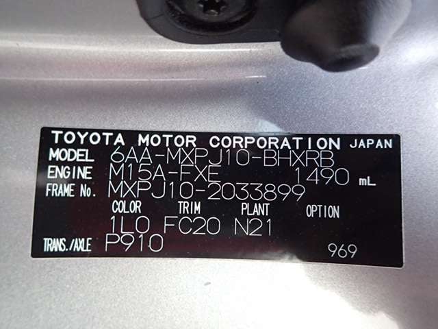 | CHASSIS NO. | MXPJ10-2033899 |