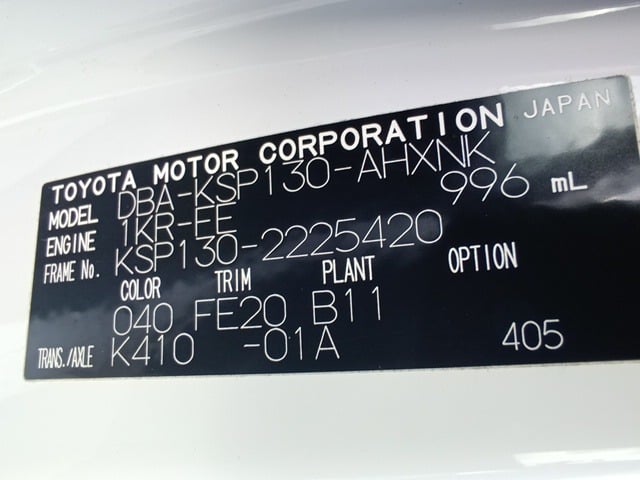 | CHASSIS NO. | KSP130-2225420 |