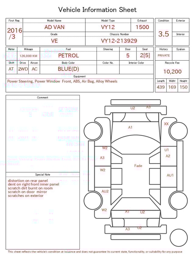 | CHASSIS NO. | VY12-213929 |