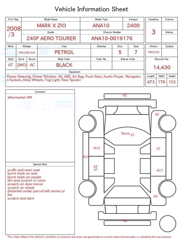 | CHASSIS NO. | ANA10-0019176 |