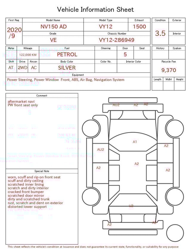 | CHASSIS NO. | VY12-286949 |