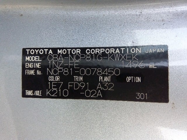 | CHASSIS NO. | NCP81-0078450 |
