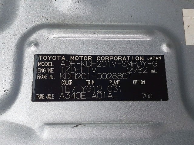 | CHASSIS NO. | KDH201-0028801 |