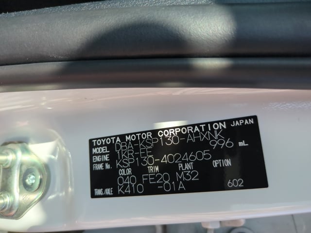 | CHASSIS NO. | KSP130-4024605 |