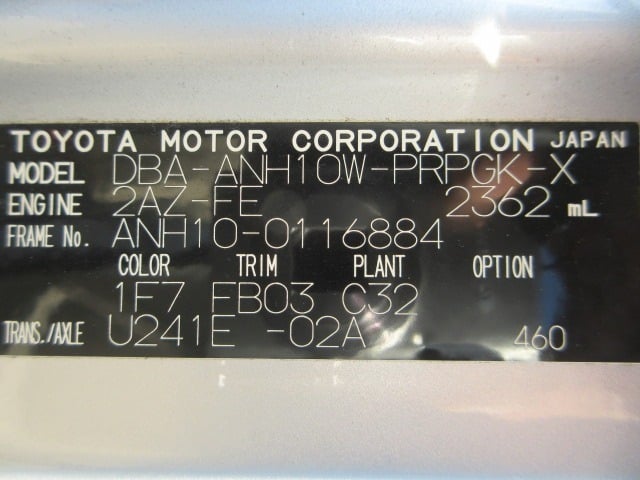 | CHASSIS NO. | ANH10-0116884 |