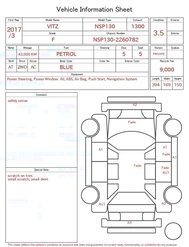| CHASSIS NO. | NSP130-2260782 |