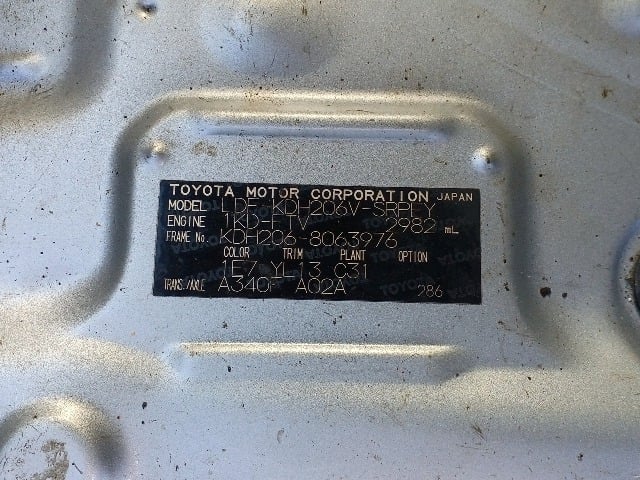 | CHASSIS NO. | KDH206-8063976 |