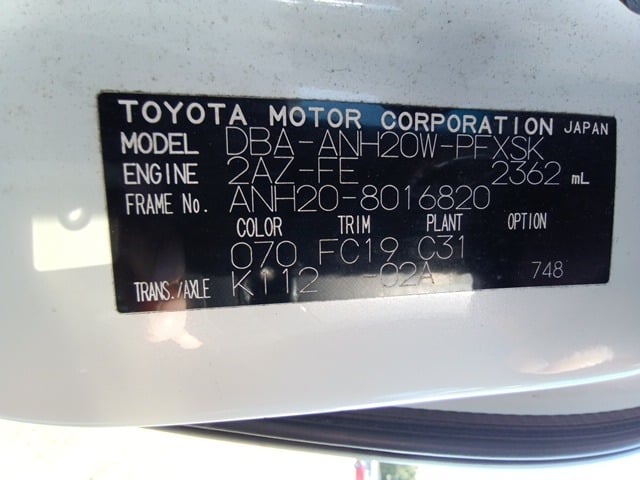 | CHASSIS NO. | ANH20-8016820 |
