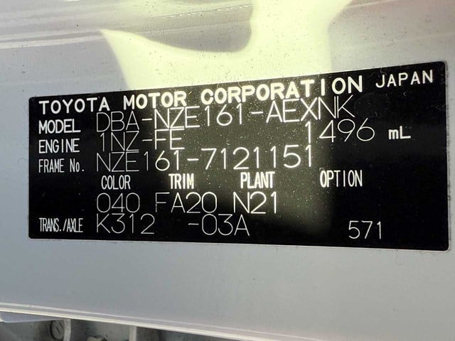 | CHASSIS NO. | NZE161-7121151 |