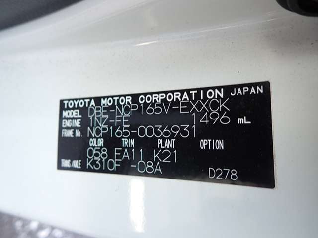 | CHASSIS NO. | NCP165-0036931 |