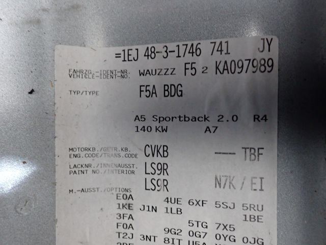 | CHASSIS NO. | WAUZZZF52KA097989 |