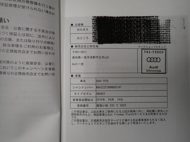 | CHASSIS NO. | WAUZZZF26KN063147 |
